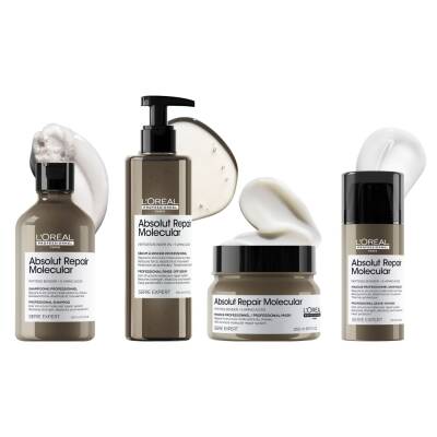 Apply evenly on towel-dried hair. Leave in for 1 to 2 minutes. Rinse thoroughly. For optimal results, use after Absolut Repair Molecular shampoo and rinse-off serum.
