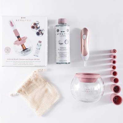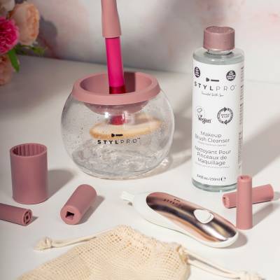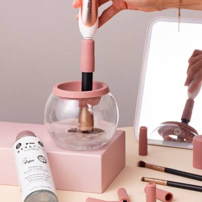B. For non-water-soluble makeup (for example, foundation), add 10-20ml (0.34-0.68floz) of (D) StylPro Makeup Brush Cleanser, depending on brush size (sold separately at www.stylpro.co.uk), into the bowl. Ensure the solution level is less than half the height of the brush bristles you wish to clean.